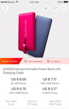 2,買家端Alibaba.com APP產(chǎn)品詳情頁,產(chǎn)品增加ready to ship的標(biāo)簽