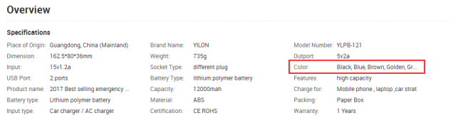 而Color屬性在阿里后臺發(fā)布jump starter類目的產(chǎn)品時,系統(tǒng)屬性里是沒有給出的。說明這些同行是輸入在自定義屬性中,那我們也可以在自定義屬性添加Color:Black。這樣就能有效并有針對性地覆蓋買家偏好的屬性。