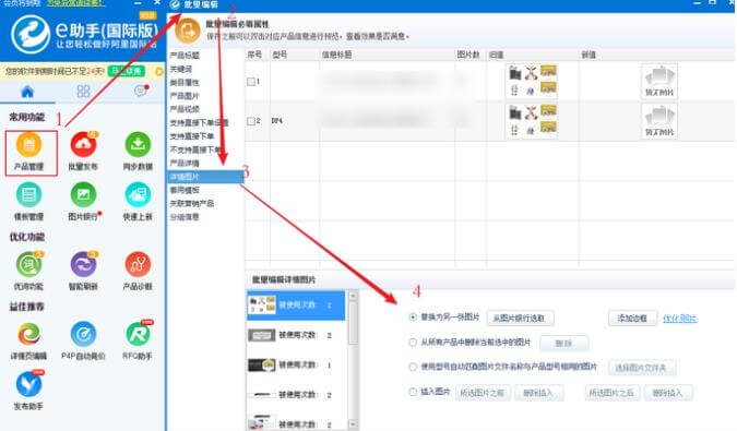 使用軟件:e助手國際版   批量修改產(chǎn)品詳情