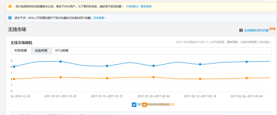請(qǐng)登錄數(shù)據(jù)管家---》專題---》無線專題,主要看一下“詢盤規(guī)?!焙汀百I家規(guī)模”。