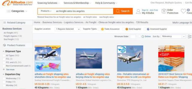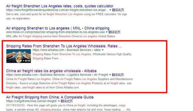 2. 以輸入" air shipping from shenzhen to los angeles"為例,客戶會(huì)找到兩種信息。