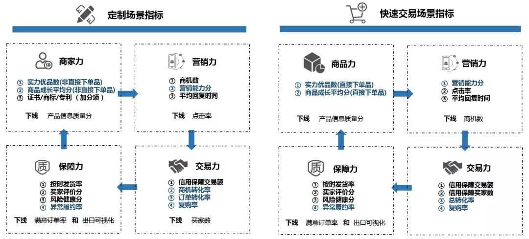 隨著平臺(tái)場(chǎng)景的不斷豐富,國(guó)際站將逐漸孵化出定制和快速交易場(chǎng)景,星等級(jí)3.0也將在商家后臺(tái)同時(shí)展現(xiàn)定制和快速交易兩套評(píng)分的指標(biāo)和數(shù)據(jù),讓有不同需求的商家能更清晰的了解不同場(chǎng)景下需要優(yōu)先關(guān)注的指標(biāo)。