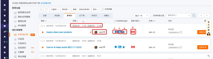 大家收到詢盤通知后一般都會進(jìn)入商機列表頁,可以通過列表頁提供的信息對買家有個初步印象
