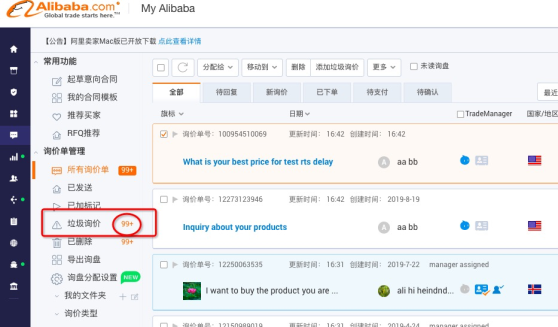 系統(tǒng)識(shí)別可能會(huì)出現(xiàn)漏網(wǎng)之魚(yú),需要您提高安全意識(shí),防范釣魚(yú)風(fēng)險(xiǎn),及時(shí)舉報(bào);還有可能出現(xiàn)“誤殺”的情況,所以建議您看到垃圾詢(xún)價(jià)有新詢(xún)價(jià)提醒的時(shí)候,及時(shí)檢查一下是否確定是垃圾詢(xún)盤(pán),如果不是可以移出;如果已經(jīng)超過(guò)發(fā)送時(shí)間24小時(shí)的垃圾詢(xún)盤(pán),移出后會(huì)影響及時(shí)回復(fù)率,需要慎重操作