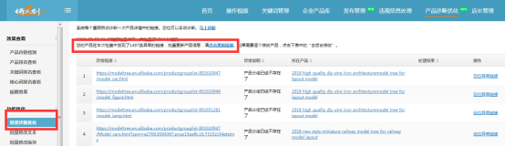 解決方法:在my-alibaba后臺(tái),一個(gè)個(gè)去點(diǎn)開產(chǎn)品檢查是否有失效內(nèi)鏈工作量比較大,如果有倚天劍的建議用倚天劍的產(chǎn)品診斷優(yōu)化-鏈接診斷優(yōu)化,每周自動(dòng)診斷并且可以批量更新