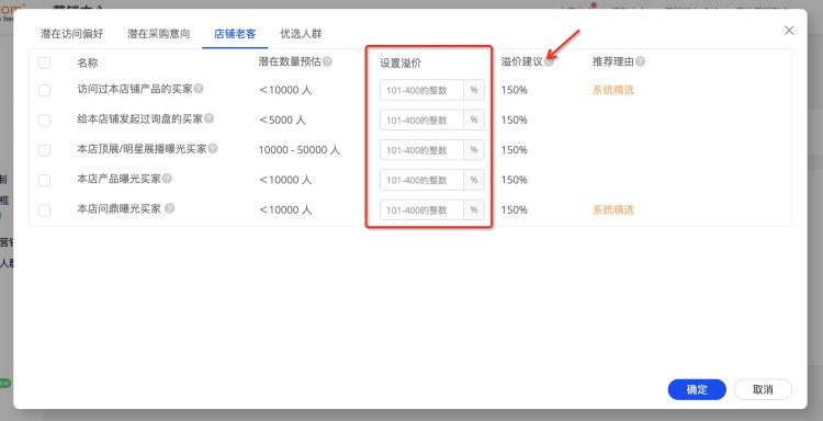 內(nèi)容與現(xiàn)有定向推廣、爆品助推等智能計劃人群設置方式一致;