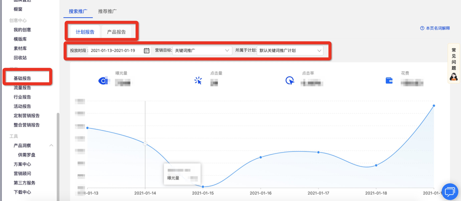 您可以通過基礎報告:查看關鍵詞推廣計劃的匯總數(shù)據(jù)、產(chǎn)品數(shù)據(jù);