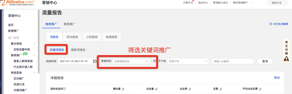 (如您找不到關鍵詞推廣的營銷目標,也可以通過計劃,篩選關鍵詞計劃查看數(shù)據(jù);)
