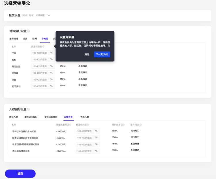 【傾斜度】越高,該市場、人群【預(yù)算分配】越高、【出價模型】越傾向于商家的選擇;