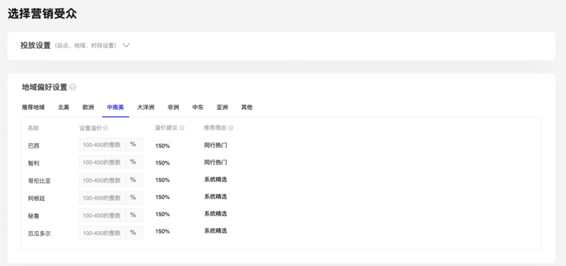 其中,針對【行業(yè)智能出價】仍然保留商家對于重點市場、重點人群的投放表達(dá)入口: