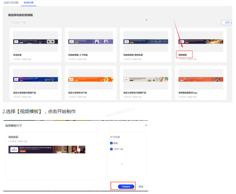 1.進入問鼎后臺—創(chuàng)意管理—新增創(chuàng)意—找到【視頻模板】