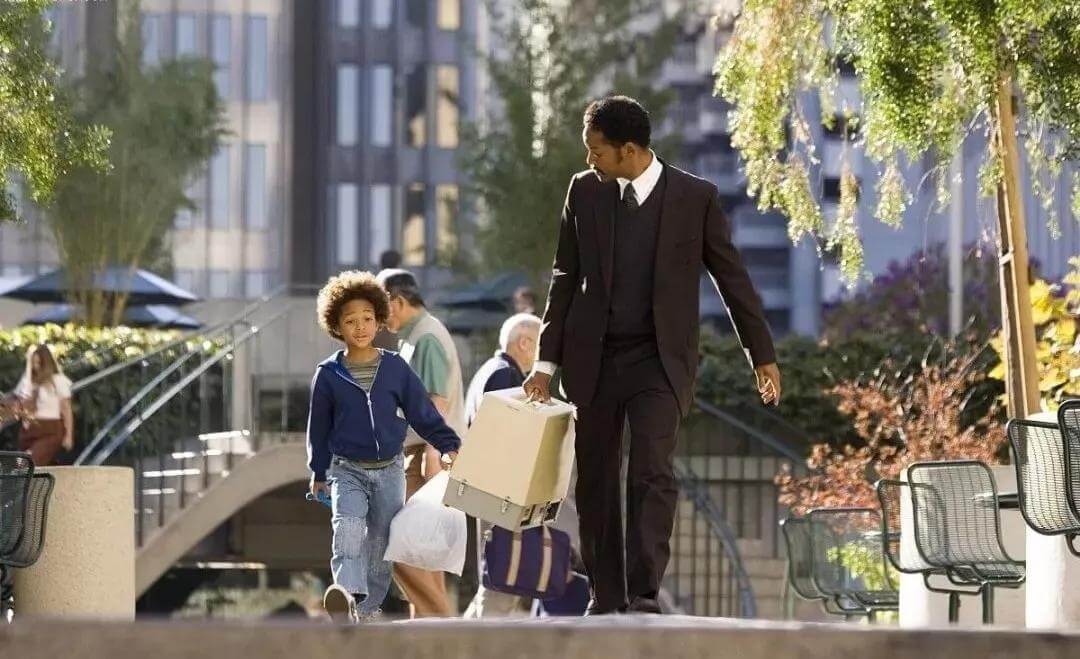 很多人應(yīng)該看過這部電影,男主生活落魄,事業(yè)不順,被妻子拋棄,和兒子相依為命,住過收容所,在公廁過過夜,交不起罰單,被人唾棄。一邊推銷醫(yī)療儀器謀生,一邊抓住股票投資公司實(shí)習(xí)的機(jī)會(huì),每天拼命的打電話給客戶,坐最后一班車回家...