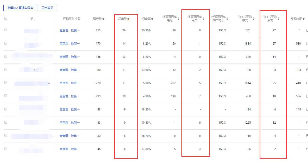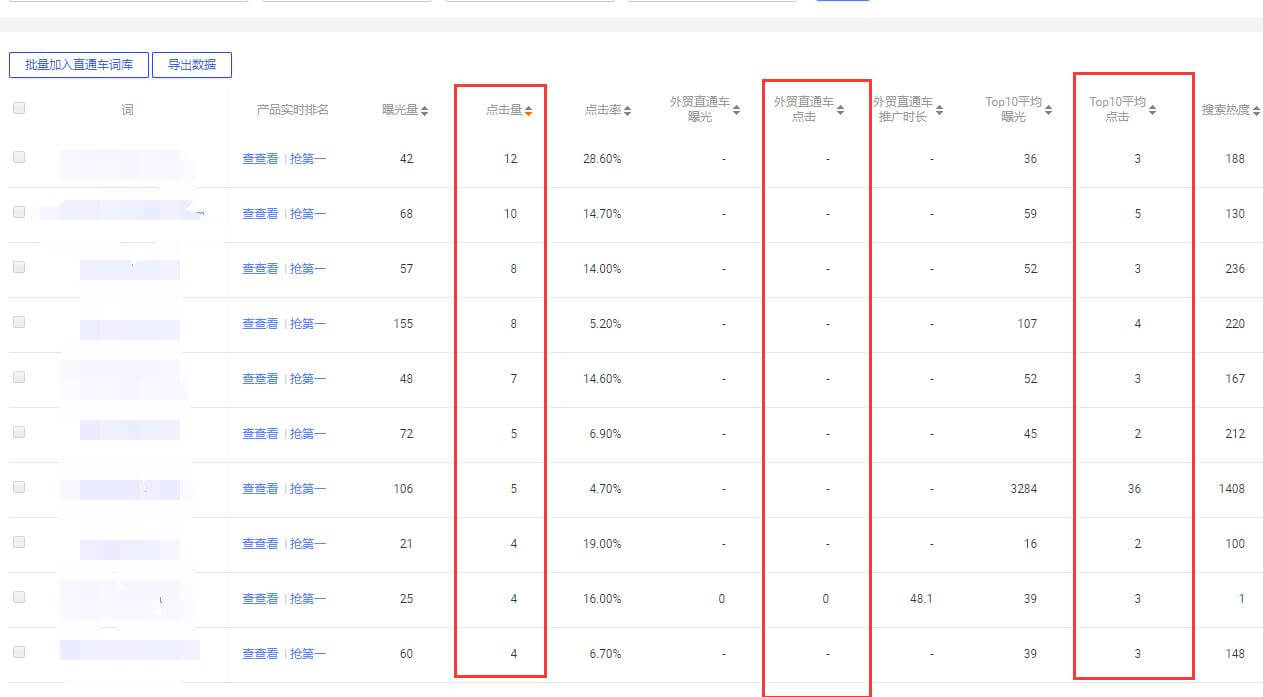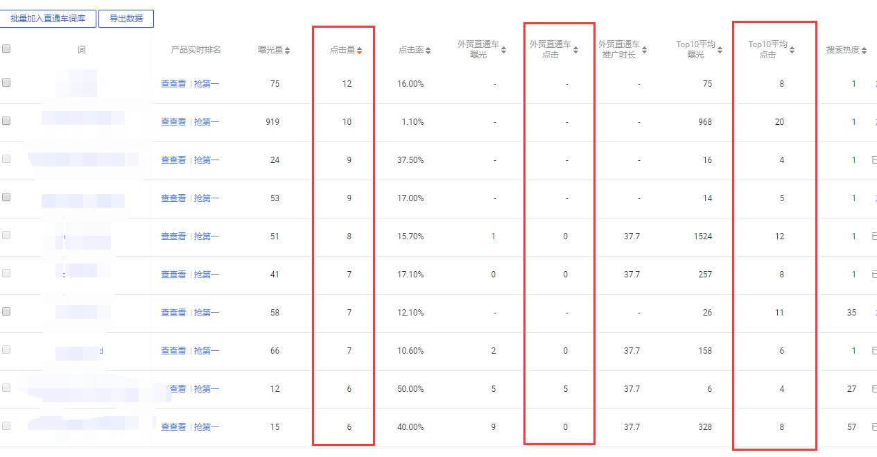 重點(diǎn)是:客戶搜索到你的詞和TOP數(shù)據(jù)。如果我們把TOP有效點(diǎn)擊詞收集起來(lái),也做排名和P4P推廣,獲得點(diǎn)擊量,效果是不是一樣提升了。TOP有的詞,我們一定要有。TOP有點(diǎn)擊的詞,我們一樣要有。